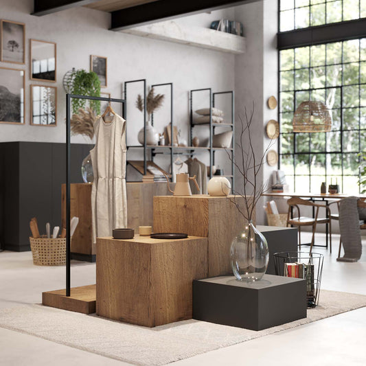 Nesting Table - Nesting Table with Garment Rack — Modern Retail Display Fixture