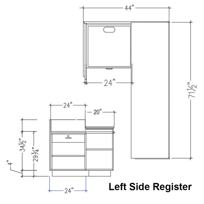 Featuring a dedicated POS register bay, ample workspace, and integrated storage compartments, it provides everything you need for a clean, efficient, and stylish checkout experience. The front panel’s rounded edge trim adds a touch of modern design, ensuring your counter looks professional from every angle.