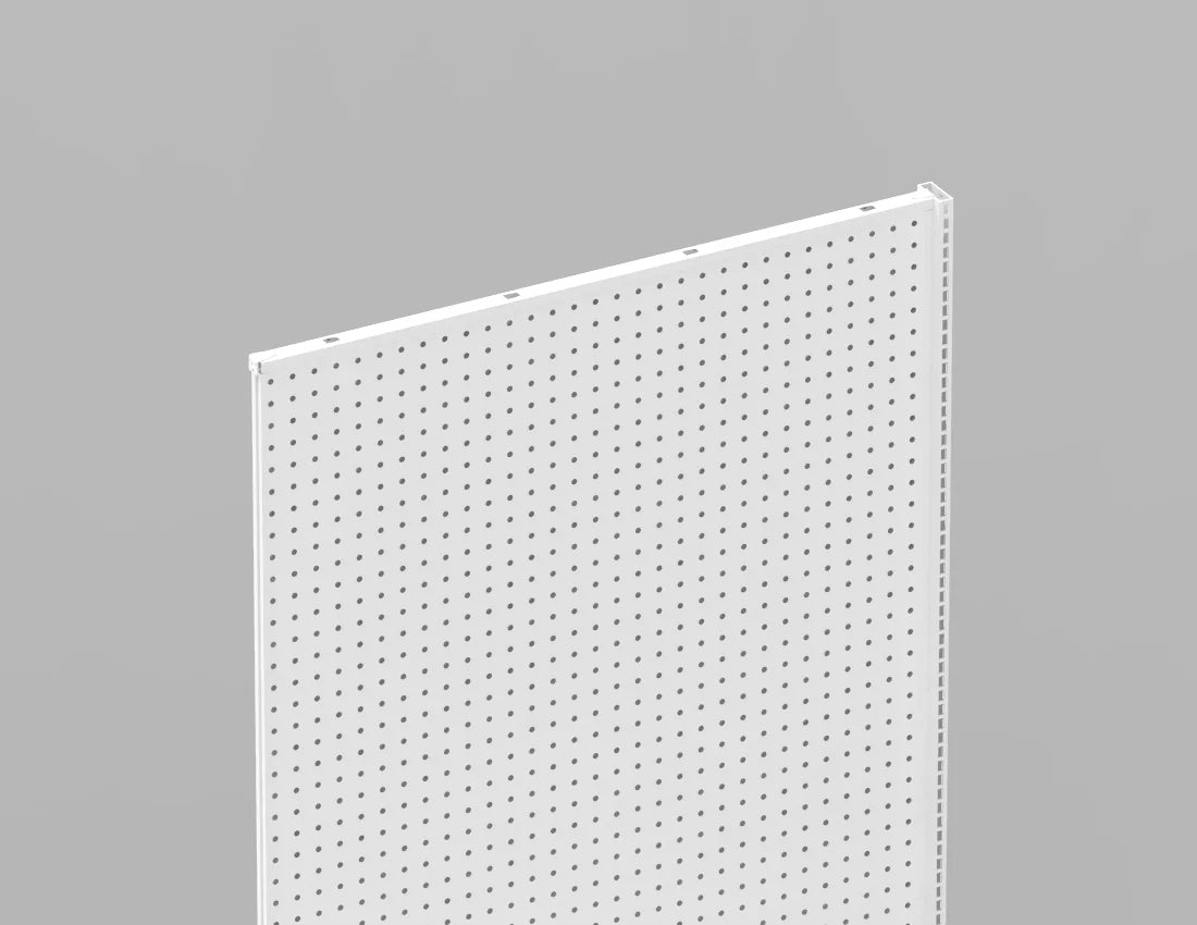 Perforated Back Panels: Supports hooks, brackets, and peg accessories for versatile merchandising.