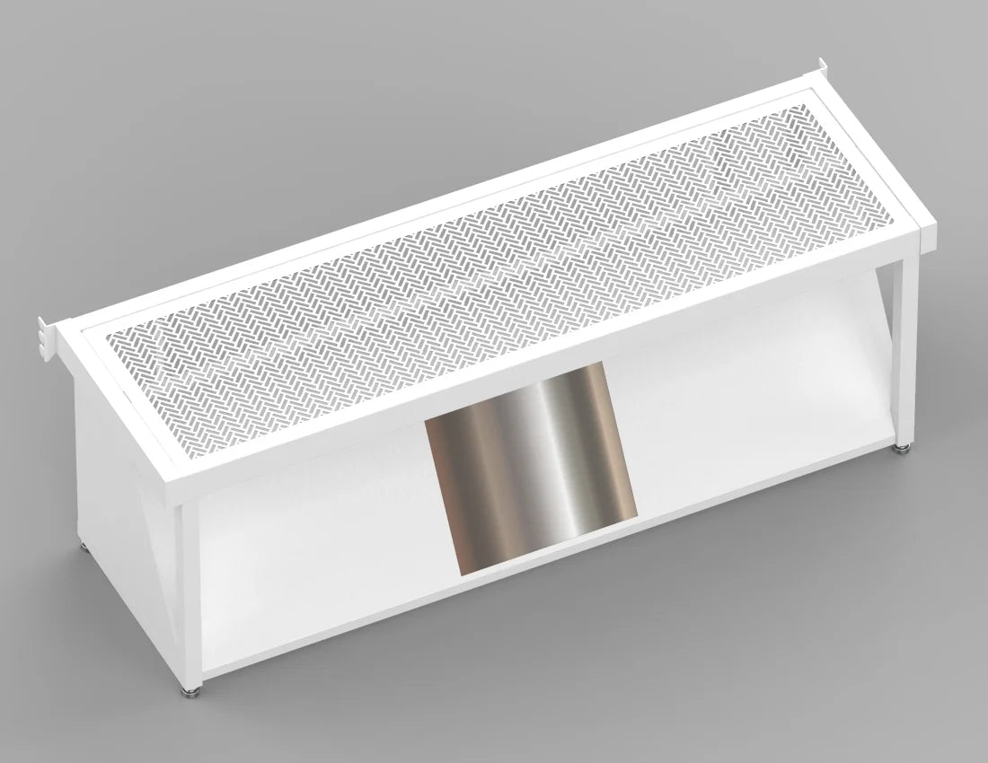 Perforated Top Shelf: Ensures grip, ventilation, and a refined industrial aesthetic.
