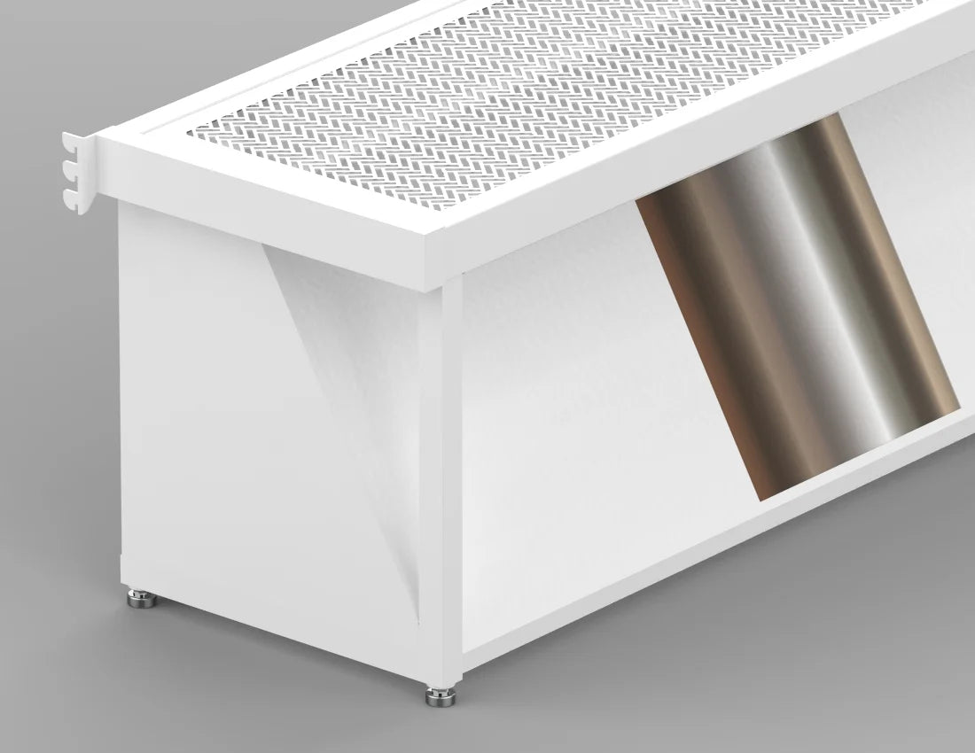 Showcase your footwear collection with style and strength using the Modern Shoe Gondola Display, designed for retail spaces that value both aesthetics and performance. Crafted from premium powder-coated steel, this sleek gondola features a perforated metal top shelf that enhances airflow while providing a durable, anti-slip surface for displaying shoes of all types — from sneakers and heels to boots and sandals.