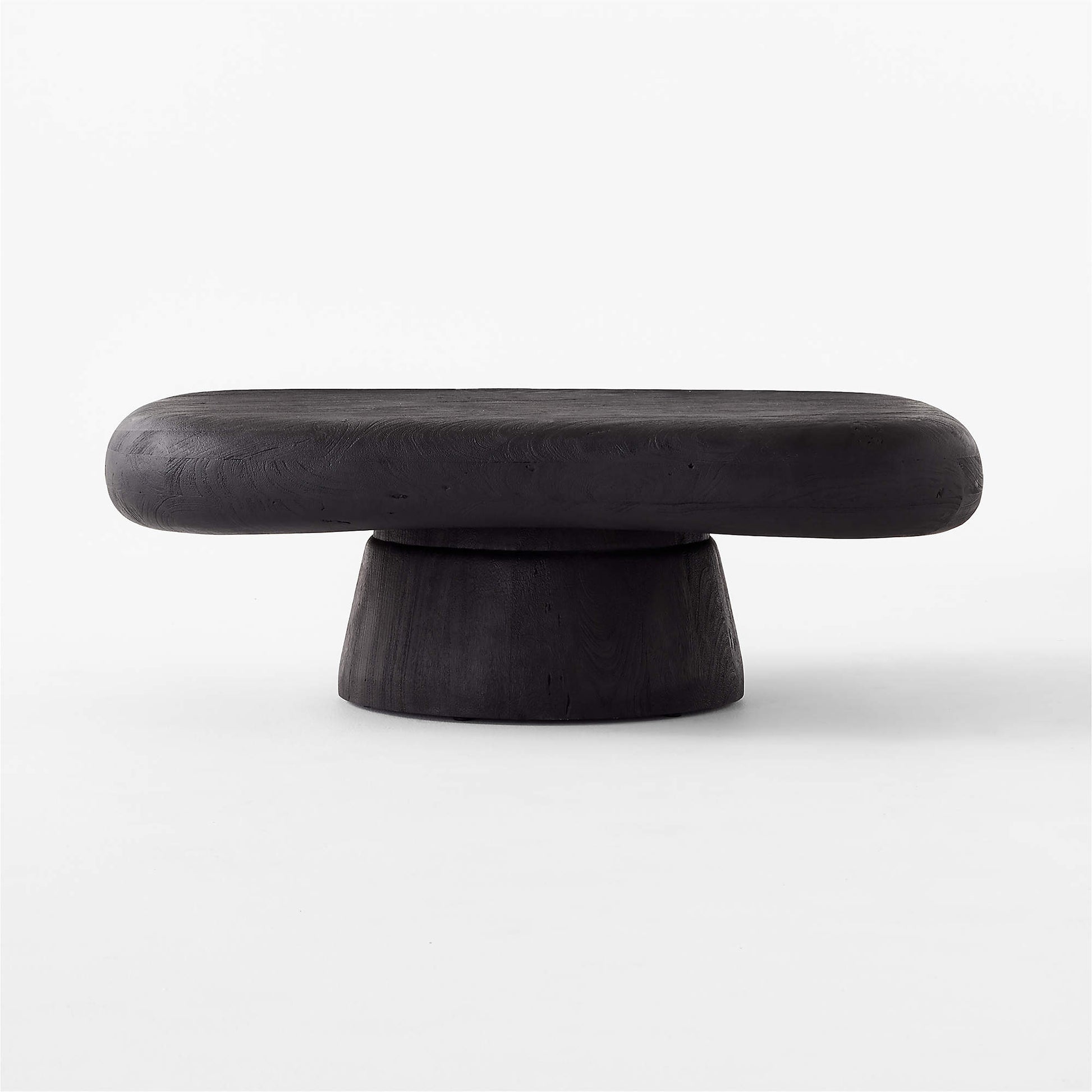 bold cast resin coffee table stands as a postmodern work of art. The amorphous silhouette evokes a hand-molded look, while the matte black finish accentuates the highs and lows of the undulating surface created during the casting process.