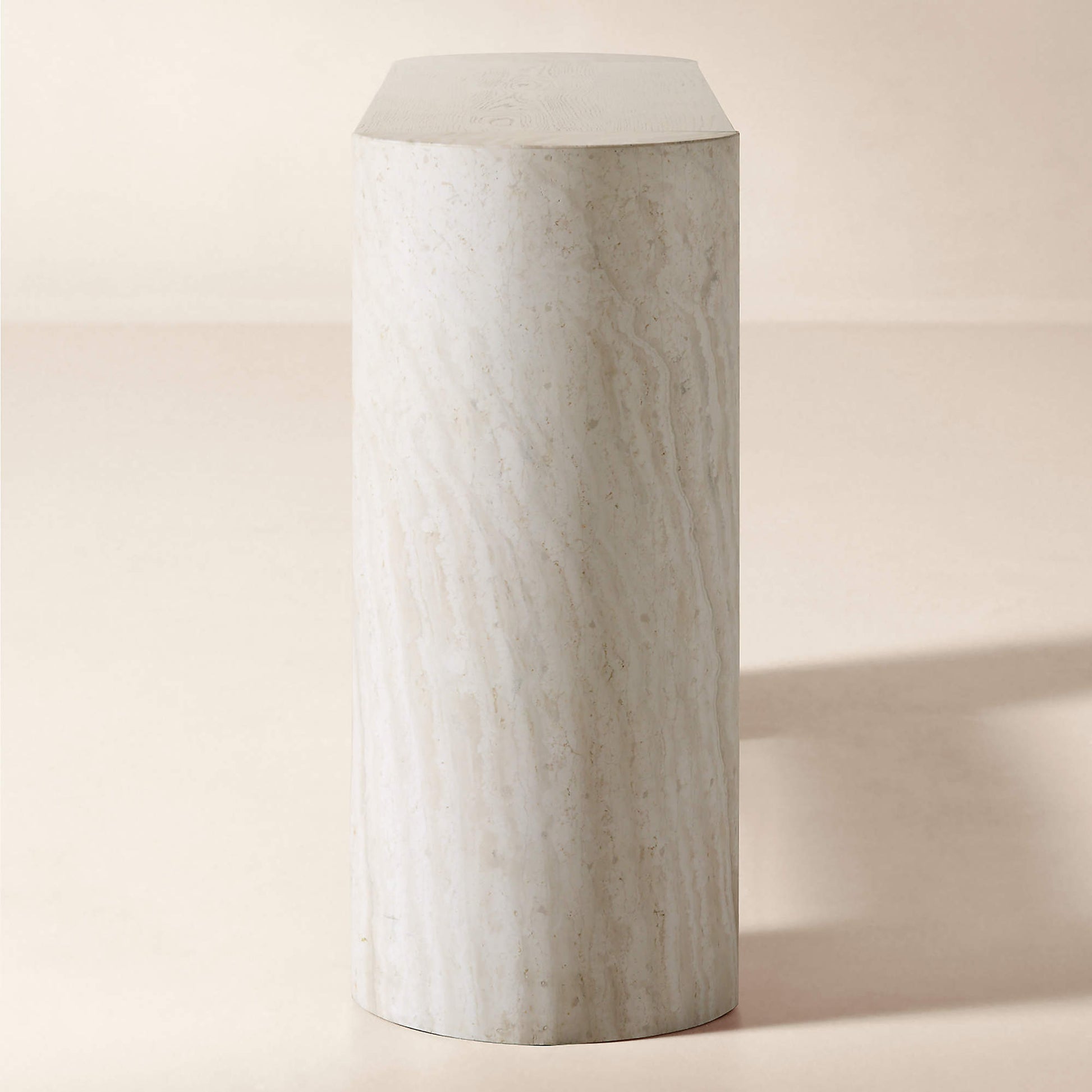 Sculptural silhouette: Features bold cylindrical legs with carved scoop details for a distinctive architectural look.