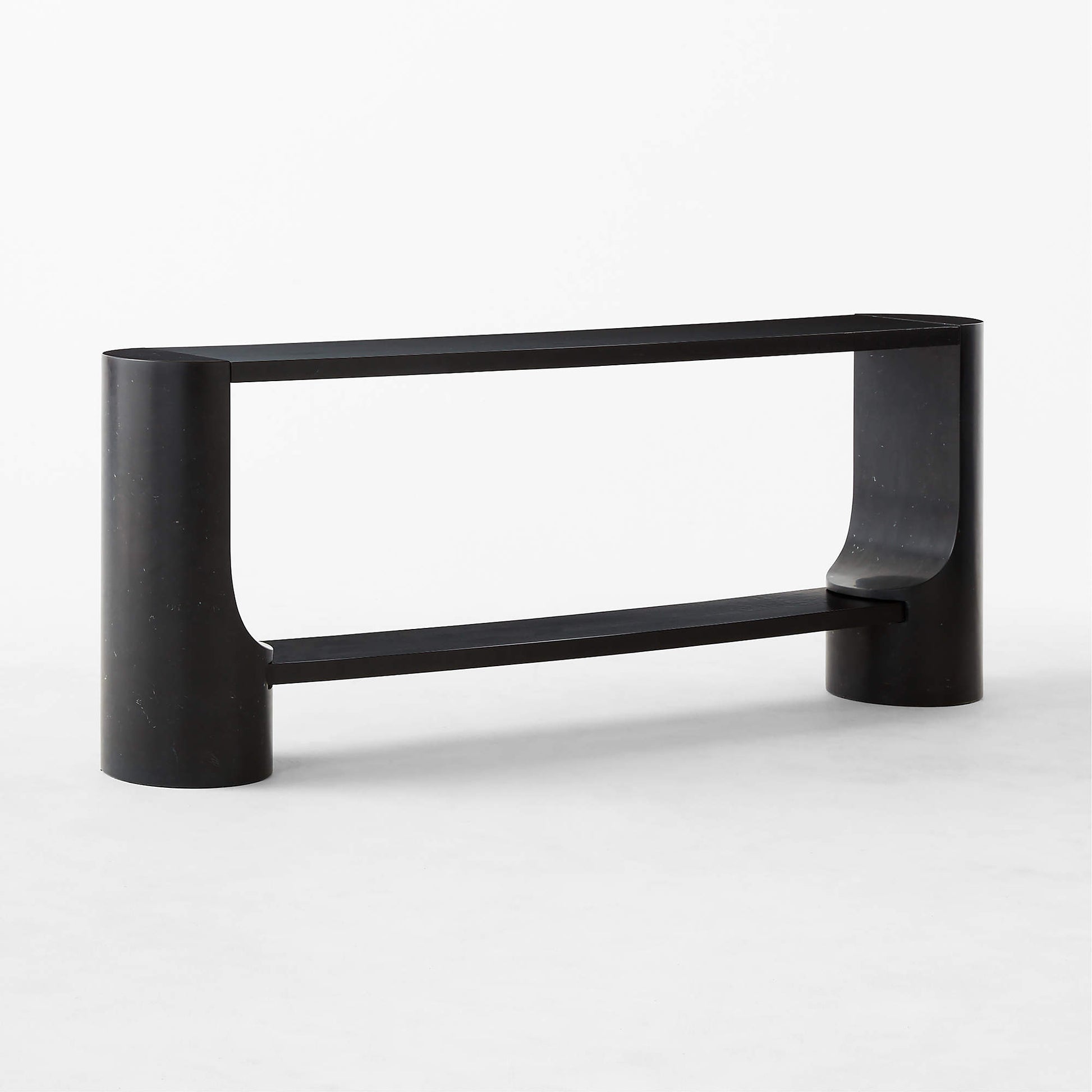 The Console table embodies modern artistry with a striking sculptural form. Its bold cylindrical legs transition seamlessly into gracefully scooped supports, creating an architectural silhouette that feels both grounded and fluid. Crafted with a refined black marble finish and solid oak details, this console table exudes sophistication and durability. The additional lower shelf adds functionality without compromising style, making it an ideal choice for entryways, hallways, or living rooms that call for a statement piece. With its minimalist design and dramatic presence, the Console Table elevates any interior into a gallery-like space.