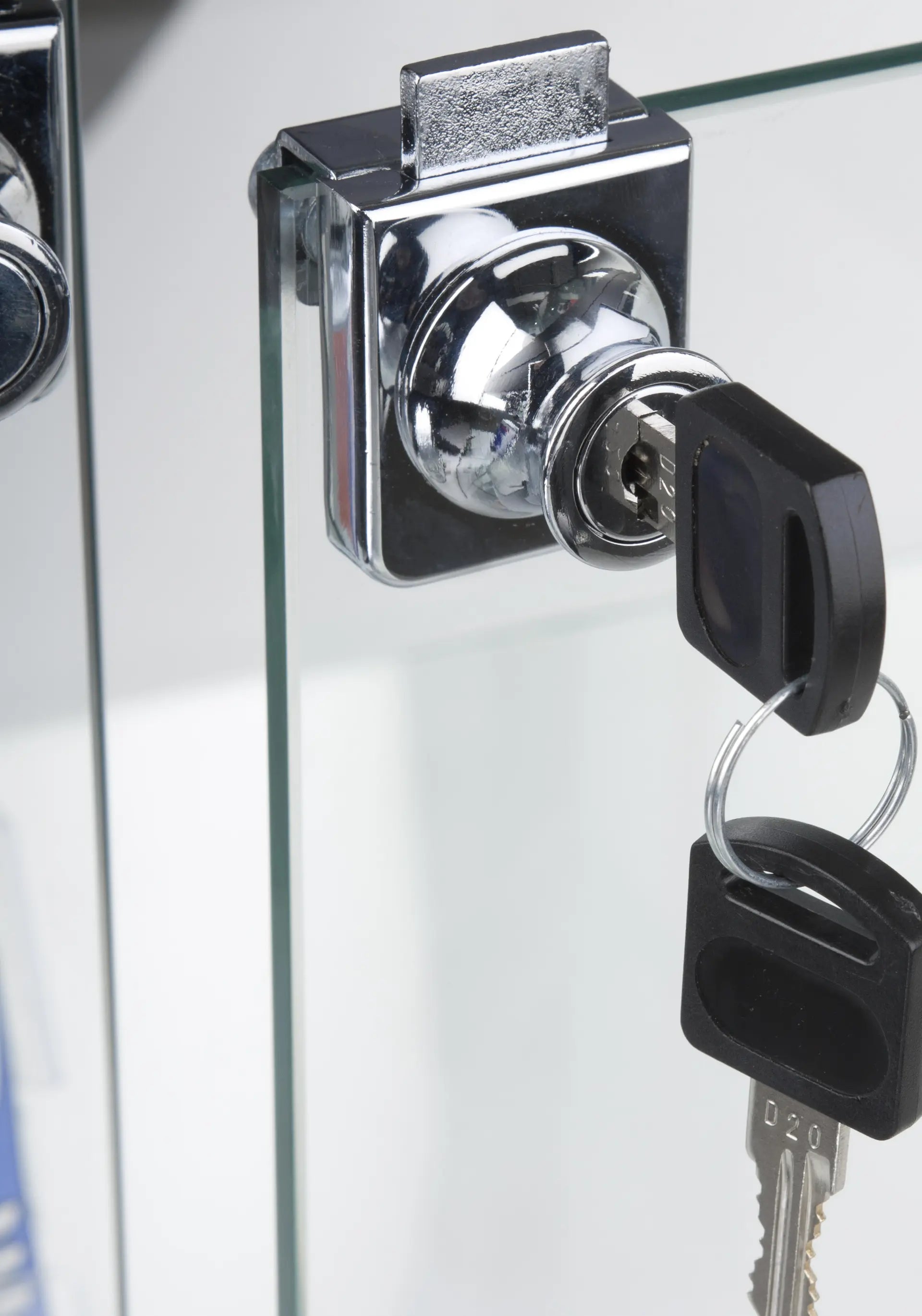 The cabinet features three transparent glass shelves that beautifully highlight your displayed items under ambient light, while the lower concealed storage compartment keeps essentials neatly tucked away. Built with precision, its sturdy aluminum structure and soft-close doors ensure durability and elegance in every detail.