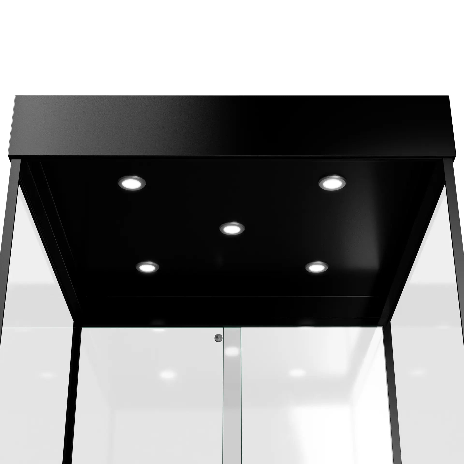 Integrated LED Lighting: Built-in spotlights enhance product presentation.