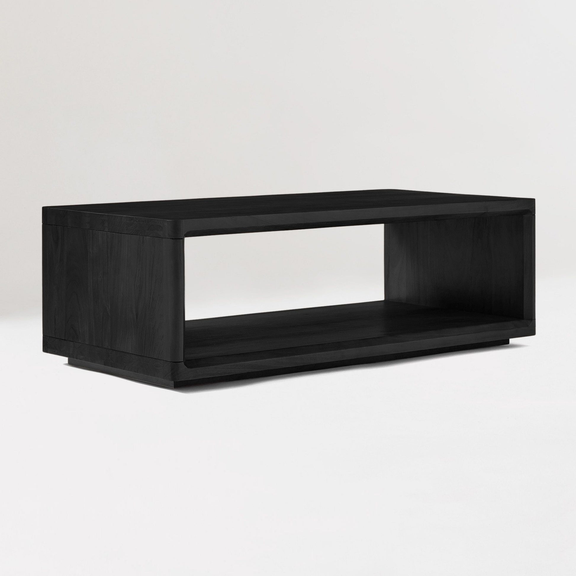 bold cast resin coffee table stands as a postmodern work of art. The amorphous silhouette evokes a hand-molded look, while the matte black finish accentuates the highs and lows of the undulating surface created during the casting process.